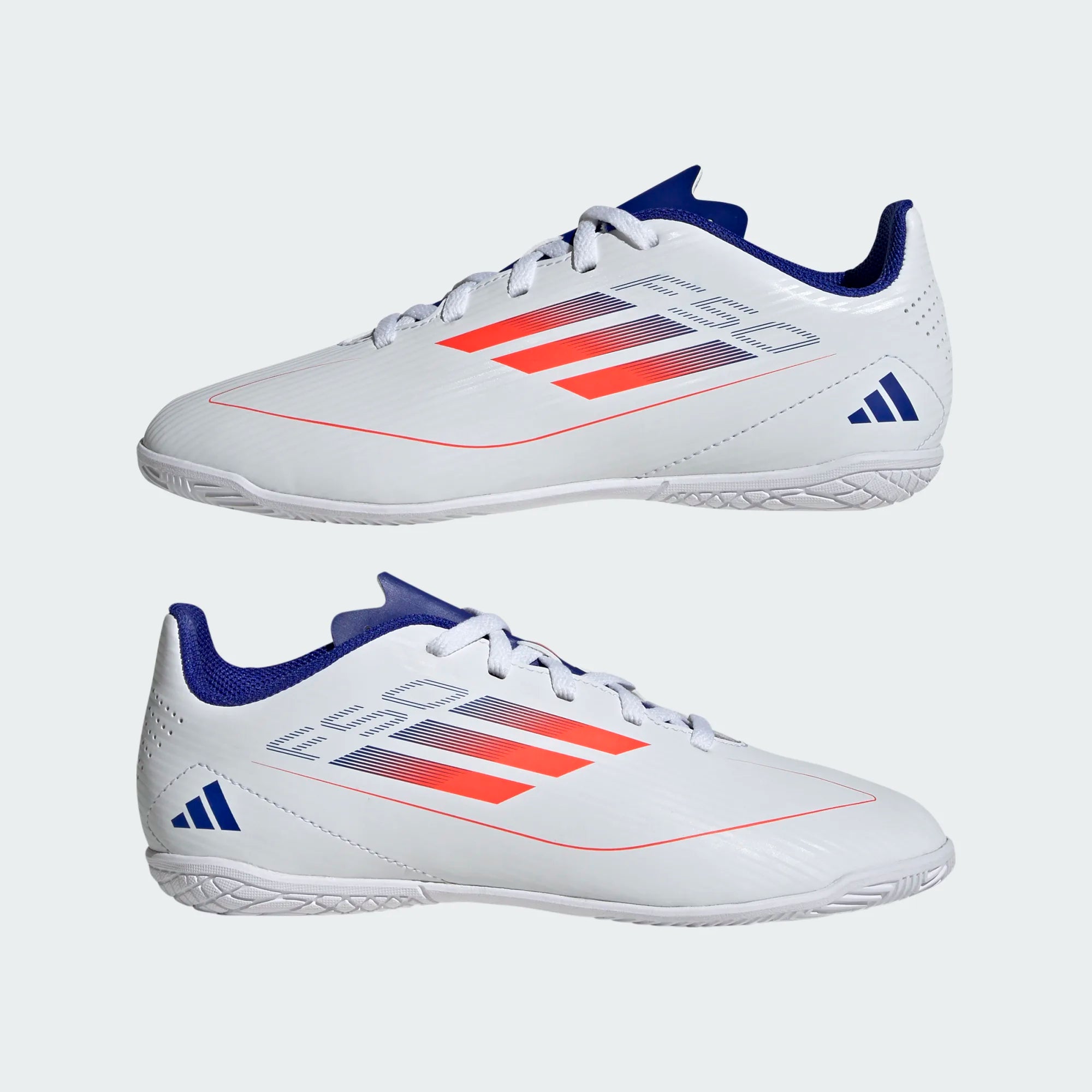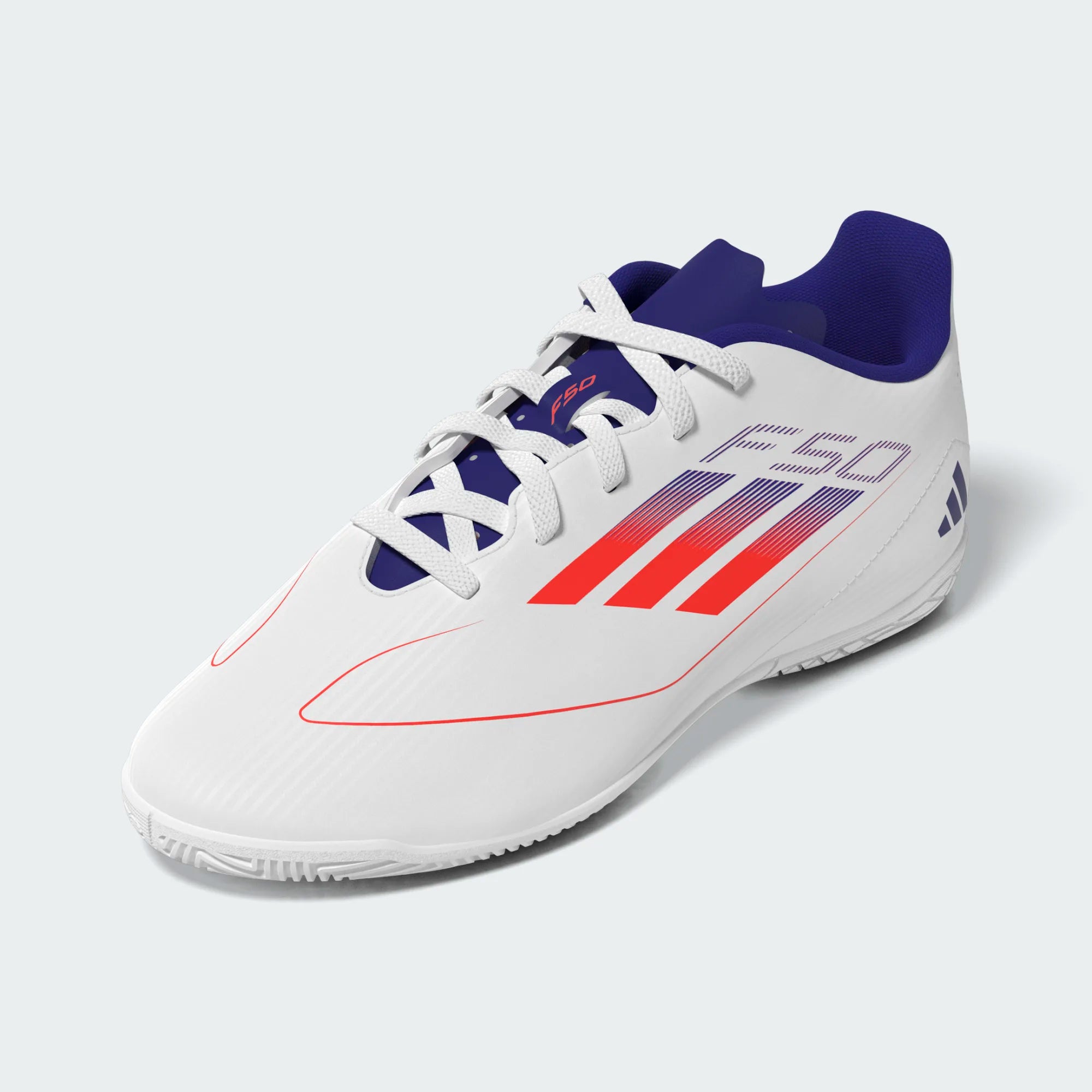 Free the fast with the adidas F50. Created to unlock the full potential of your acceleration, movement and speed. These adidas Club football boots keep you comfortable with a textured Fiberskin upper and perforated tongue. Underneath, a grippy rubber outsole ensures you stay ahead of the competition on flat indoor surfaces. This product features at least 20% recycled materials. By reusing materials that have already been created, we help to reduce waste and our reliance on finite resources and reduce the footprint of the products we make.