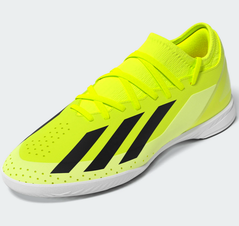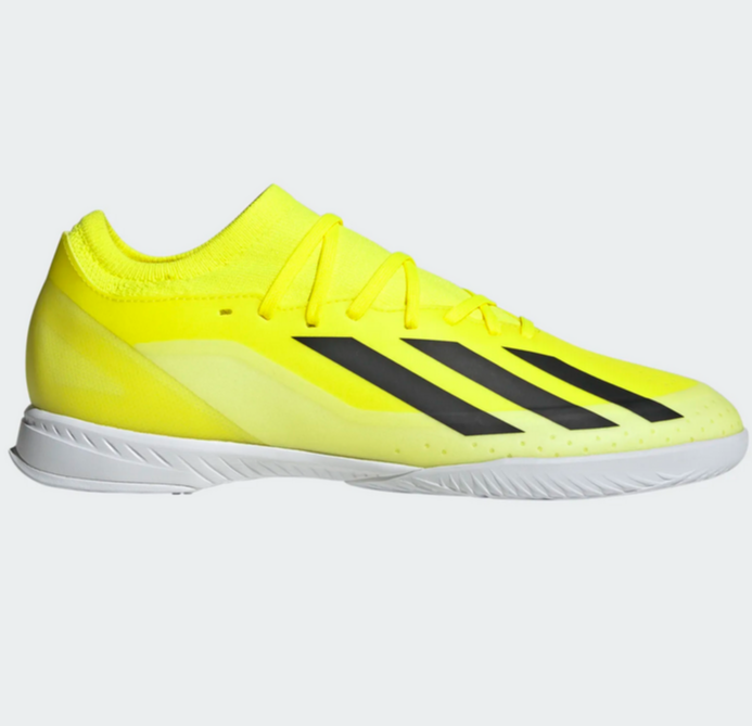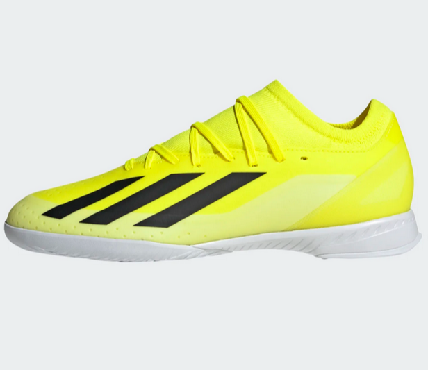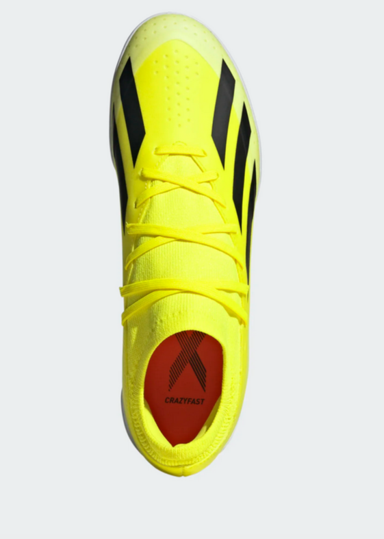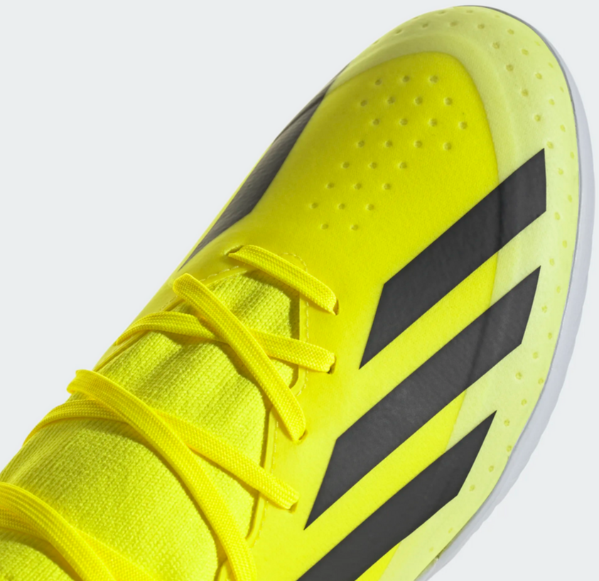 Nothing beats the rush of pure speed. Change the game in an instant and leave defenders trailing with lightweight adidas X Crazyfast. Keeping you stable at full tilt on flat surfaces, these football boots sit on a grippy rubber indoor outsole and a soft EVA midsole. Featuring extra layers only where reinforcement is required, their coated textile upper comes with a flat-knit collar for solid lockdown. This product features at least 20% recycled materials. By reusing materials that have already been created, we help to reduce waste and our reliance on finite resources and reduce the footprint of the products we make.